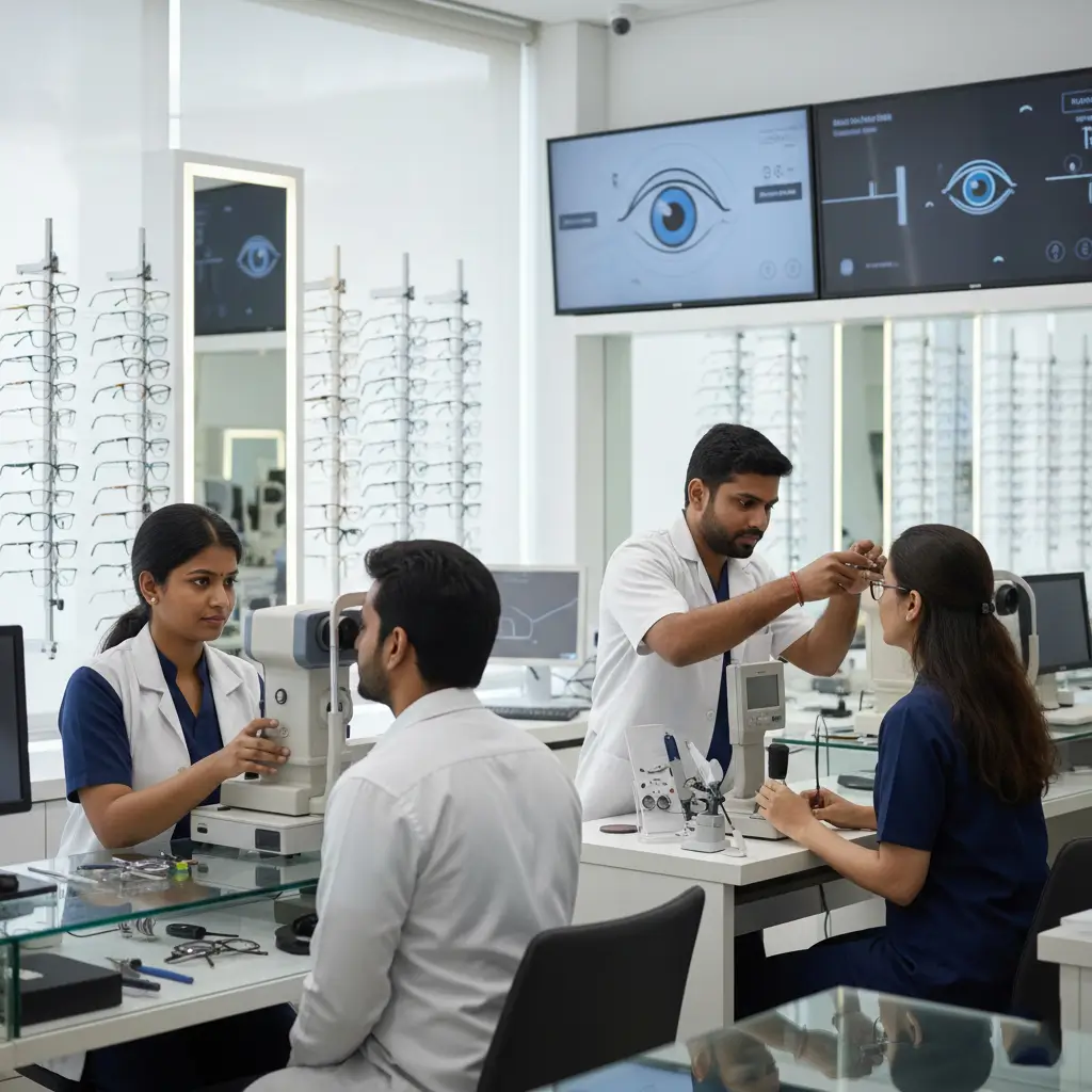 Shruthi Opticals is the in-house optical store located inside Mahathma Eye Hospital Pvt. Ltd., Trichy. We offer a complete range of premium eyewear and the latest lens technologies. Our trained opticians collaborate closely with the hospital’s ophthalmologists to ensure your prescription is exact, your lenses are optimized, and your frames fit perfectly.